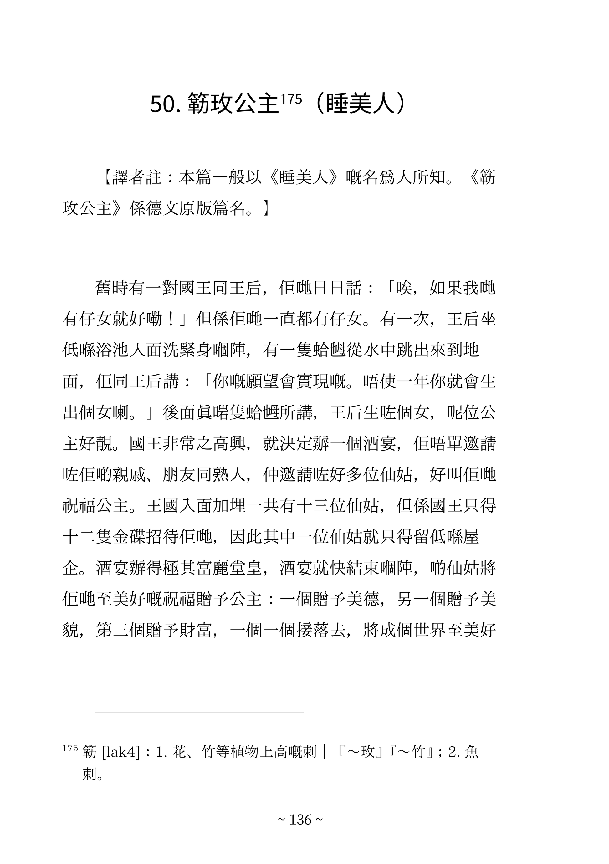 Get ready to bring the magic of Grimms' Fairytales to life like never before! Imagine the joy of sharing these timeless, enchanting stories with your children in Cantonese, the language closest to your heart. Freshly translated from the original German, this collection allows you to rediscover the thrill of classic fairytales in a way that feels personal and familiar. Dive into unforgettable adventures, spark your children's imaginations, and create treasured memories as you embark on these magical journeys together, one story at a time!